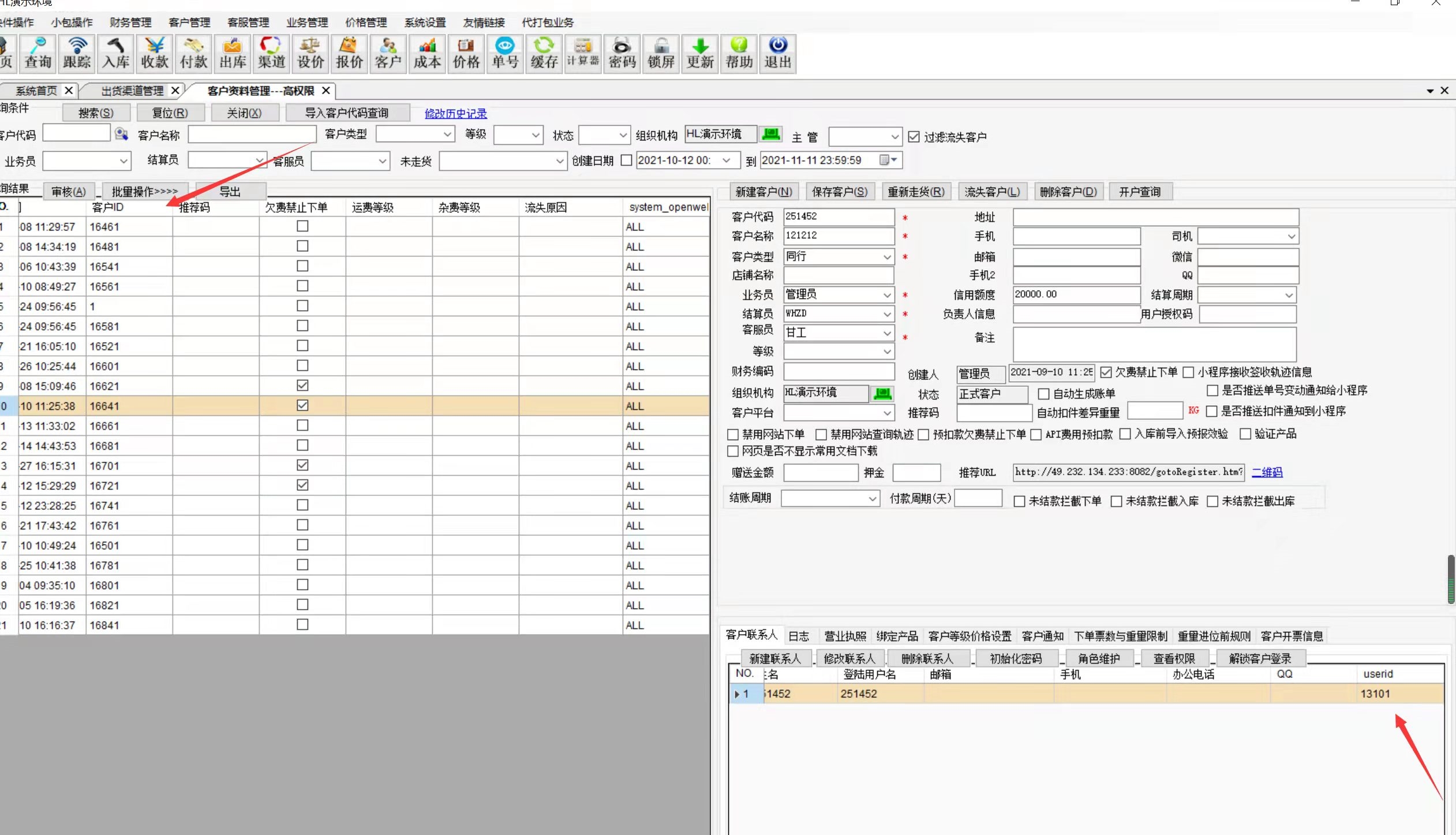 货代内部系统查询 在客户资料管理里面,如下图 客户自己查询的可以通过以下方式 红色的要修改对应货代的IP地址 货代提供给你们的8082的下单网址/selectAuth.htm?username=客户代码&password=密码 例如下面这样(浏览器打开):http://139.186.78.151:8082/selectAuth.htm?username=TEST&password=123456