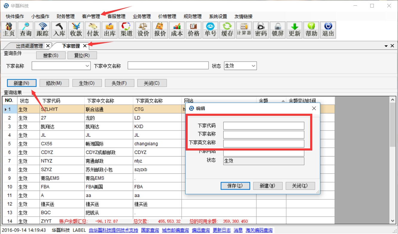 步骤----客户管理----下家管理-----新建-----填写