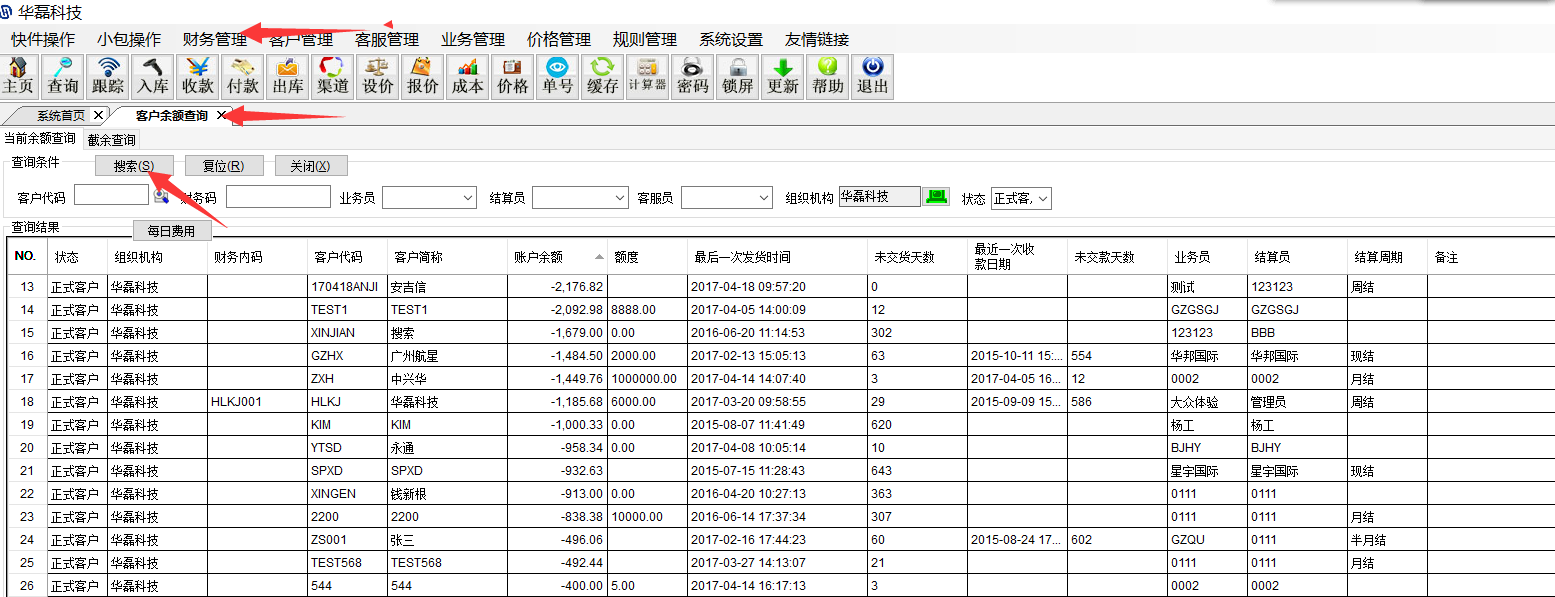 华磊系统 如何查询客户余额欠款