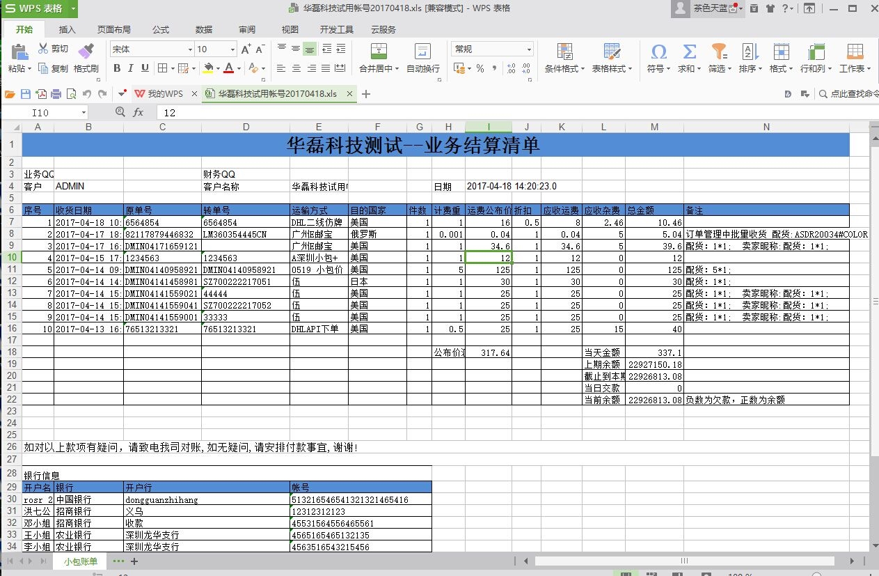 华磊系统——财务管理————客户账单查询————搜索出客户未出的账单————选中客户————右边勾选对应的单号————生成收款通知单————确认 点击查询———搜索——勾选——导出对应的格式 如果客户转账是转账单金额的全部的,可以这样按账单金额收款,我们会标记已收款 如果客户不是付款账单全部金额的,只付了部分款,只能用收款图标做收款,这种收款不标记账单和单号。