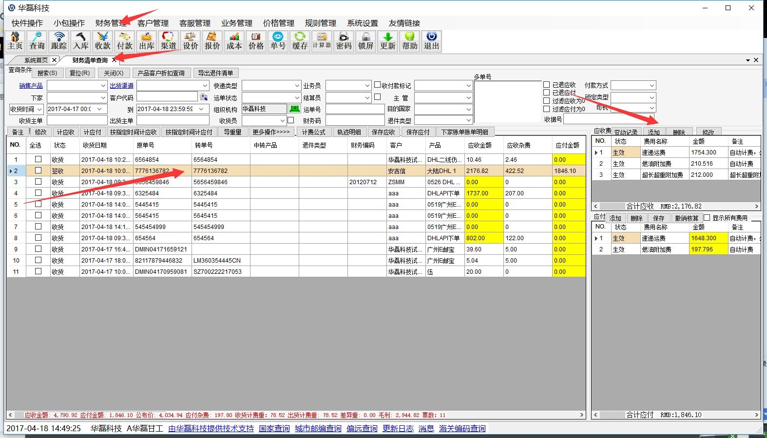 财务管理———财务清单查询————搜索————右边添加修改应收应付 批量费用统一加收的用这个 如果费用名称,金额不一样,可以使用客服管理里面的批量应收导入和批量应付导入 如果点修改——金额是灰色的——表示这个金额出过费用———可以添加一个补差价的费用名称(新加的费用会出到下一期的账单里面)————如果想在原来的基础上面改(那先要作废已经出的账单)——再修改费用————再重新出账单 如果客户有对应的单号的