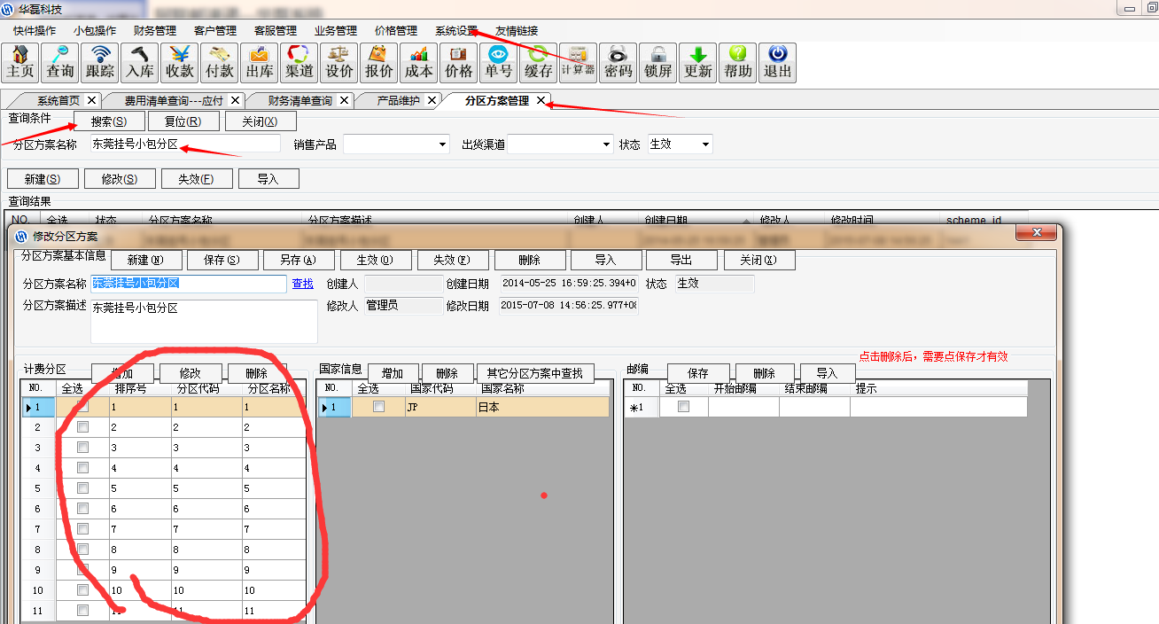 入库提示是否有服务是按照销售产品上绑定的分区方案来判断的。