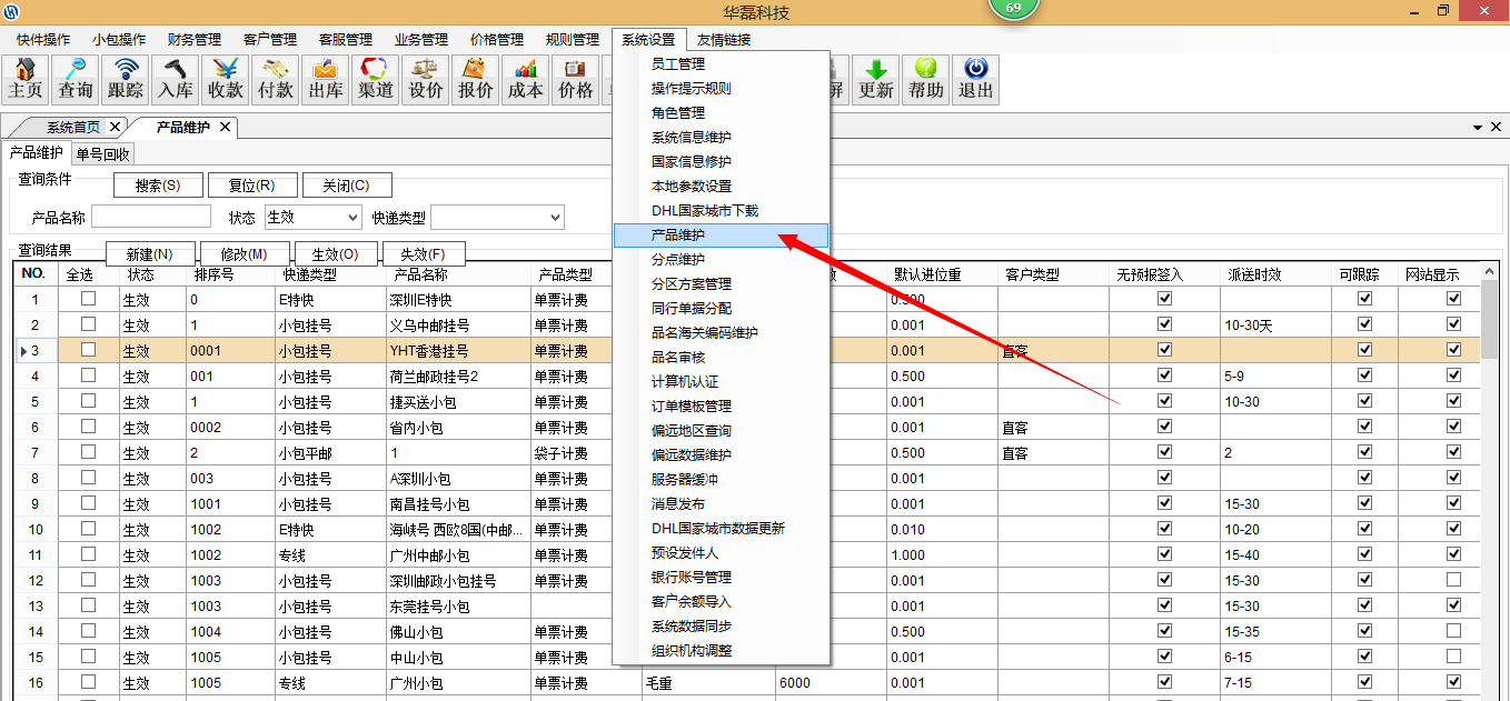2、从系统设置-产品维护进入