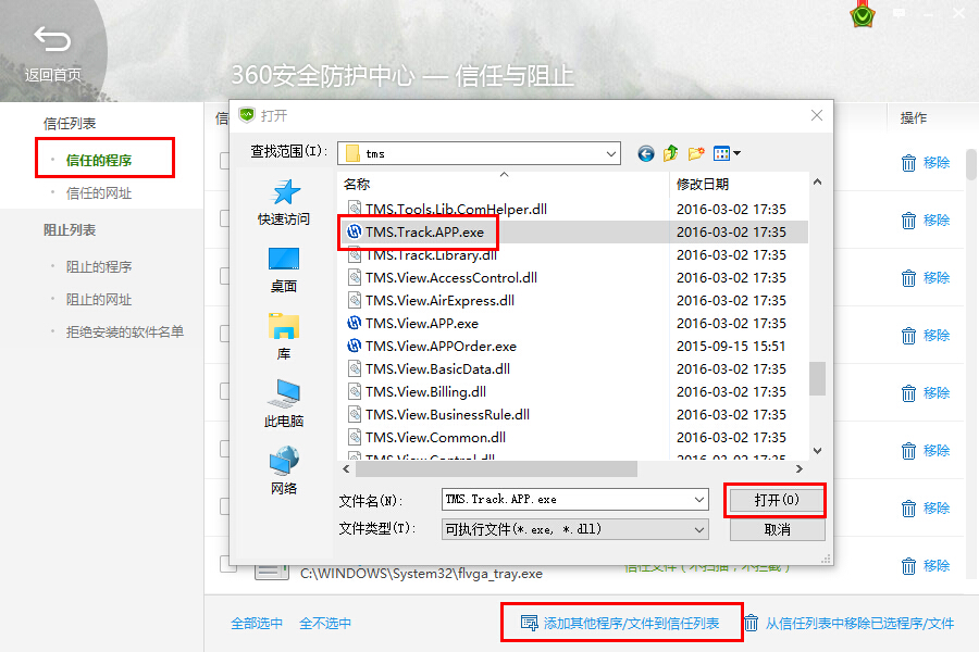 需要填加的程序同样是上图中显示的,鉴于市场使用360的用户密度较多,只以360为例,其他安全工具大同小异,如果不明白请自行百度: