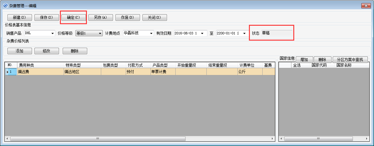 ————最后确保这个价格表的状态是确认状态的,点“确定”按钮完成操作