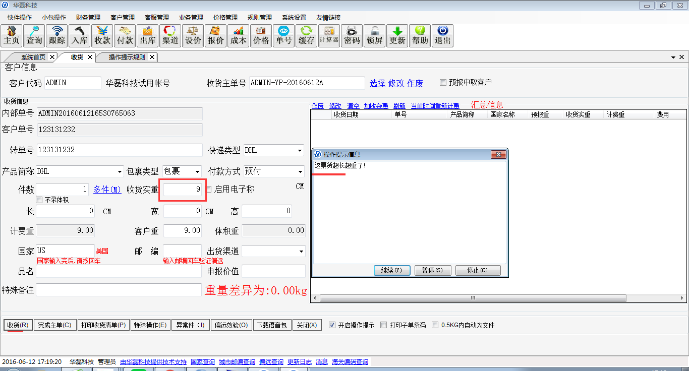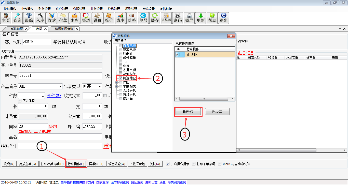 第四步:特殊操作标记为超长超重,完成系统自动加收费用,操作是和偏远是一样的