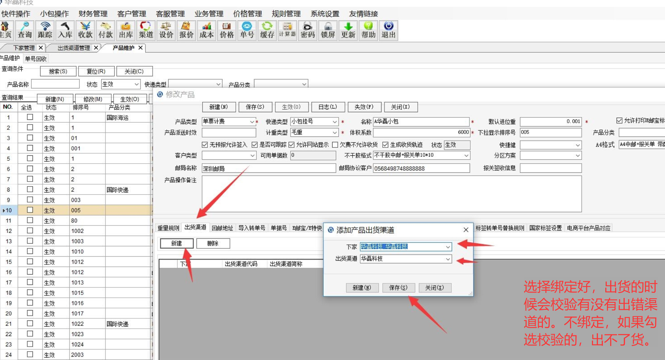 根据自己的产品选择对应的类型,填写对应的回邮信息,对应d的标签绑定(可以先不绑定,后面再回来绑定也行),填写好了,先保存,才能绑定对应的的出货渠道(不绑定出不了货)!